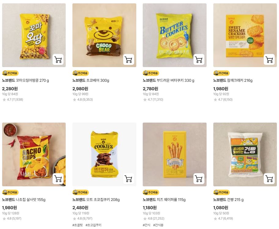 다양한 맛과 가성비를 자랑하는 노브랜드 과자들로 즐거운 간식 시간을 보내시길 바랄게요!